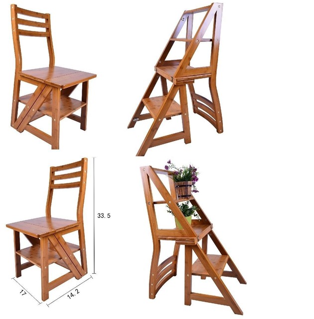 Bamboo Folding Fold Up Library Step Ladder Chair Home Kitchen Office Restaurant