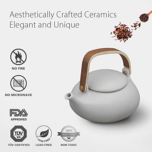 Zens Teapot Cups Set Modern Japanese Tea Pot Infuser 27 Ounce With 4 Frosted Ceramic Teacup Rattan Coasters For Loose Tea Or Women Grey
