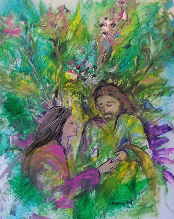 Christian Acrylic Painting Woman And Jesus Inspirational Art Contemporary Christian Art In The Garden With You